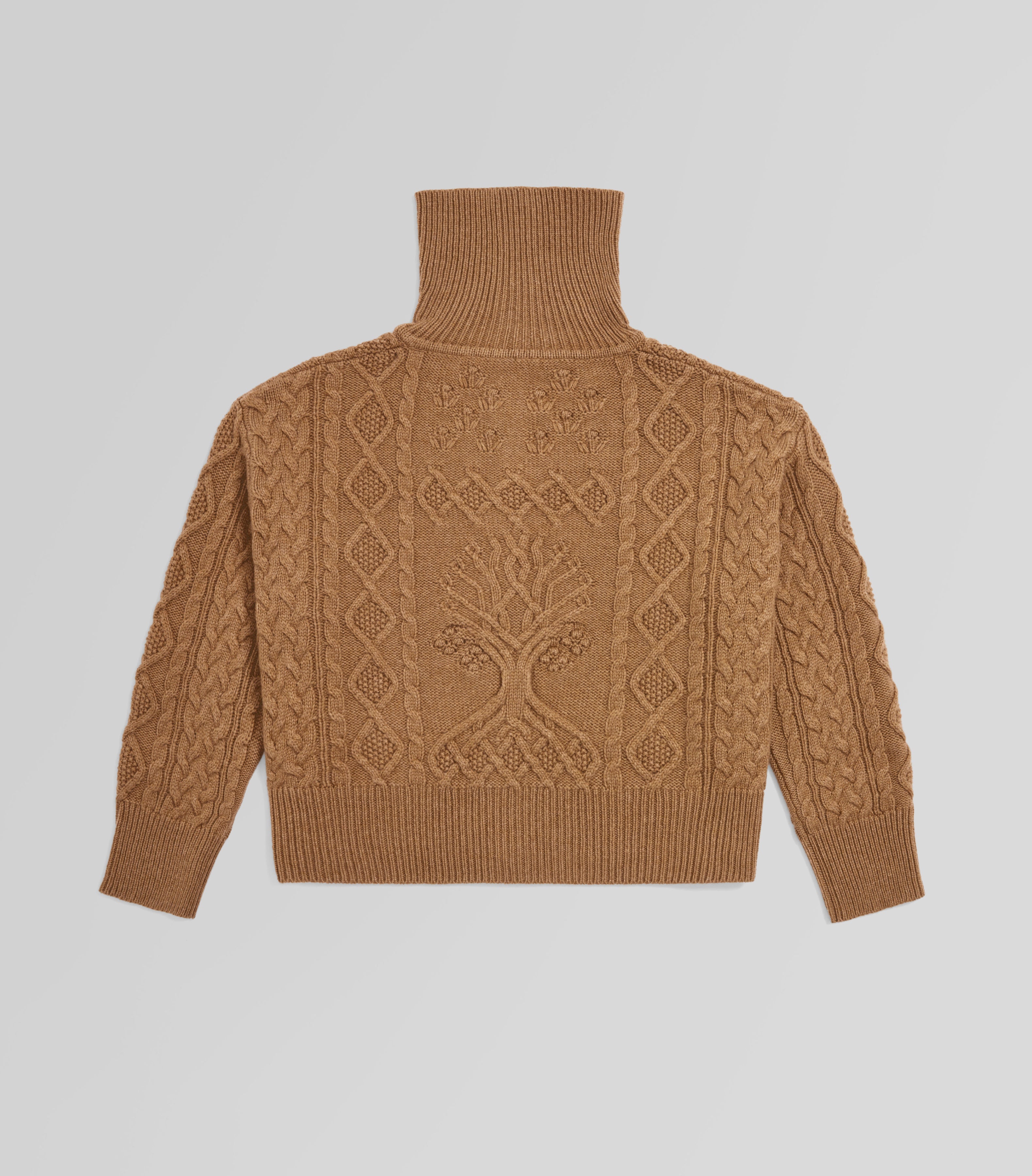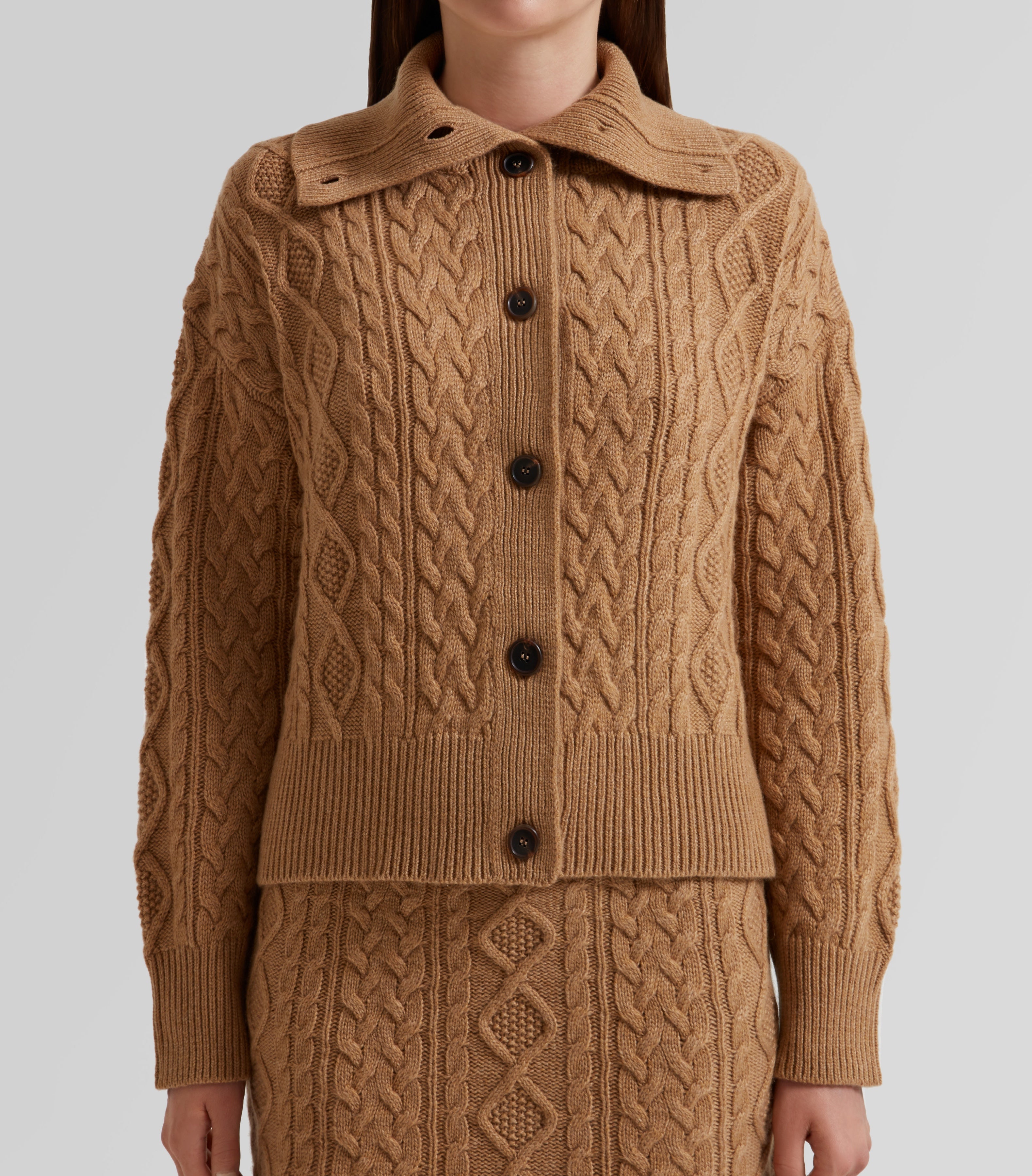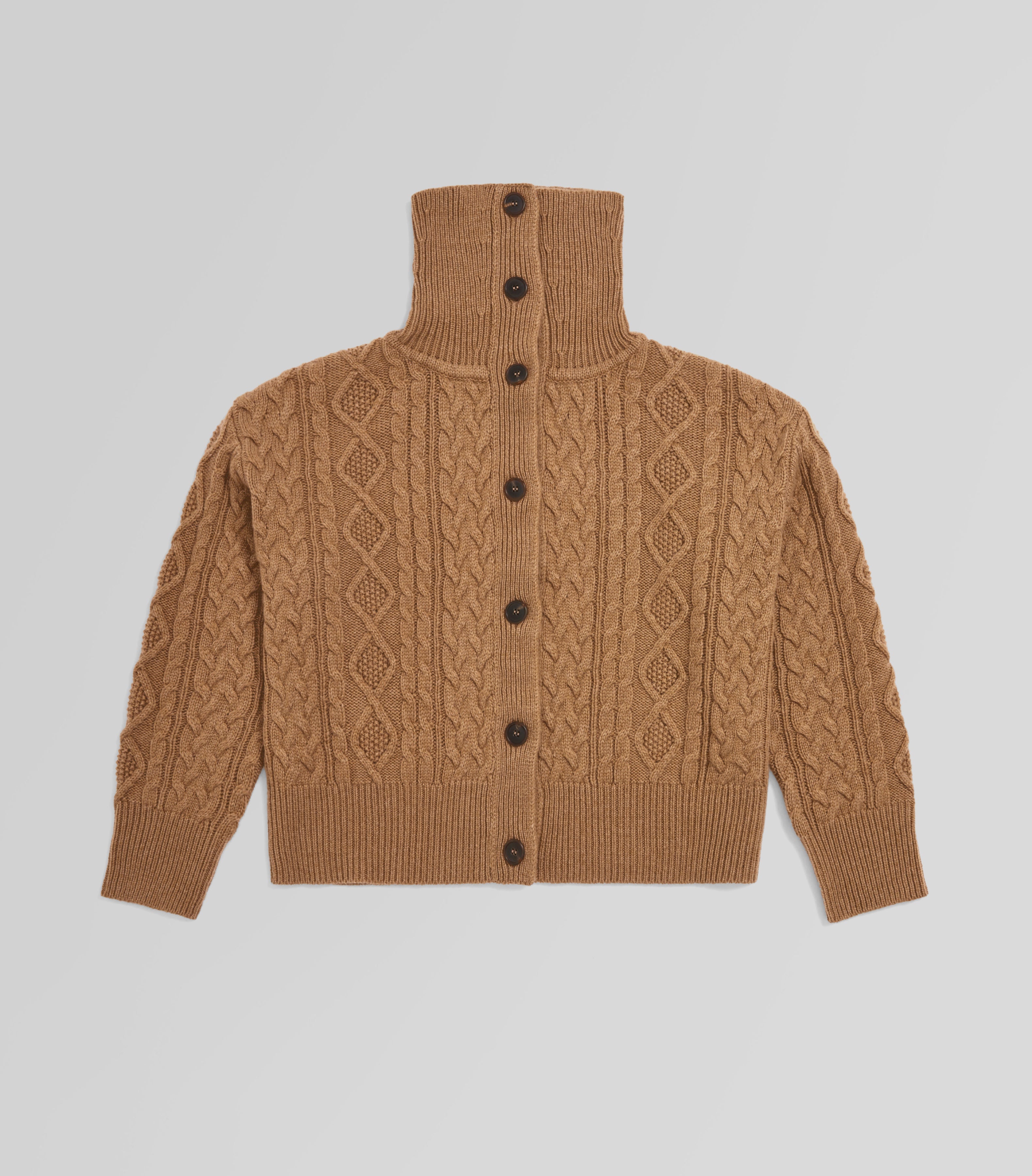 Cable Knit Cardigan with High Collar100% Cashmere