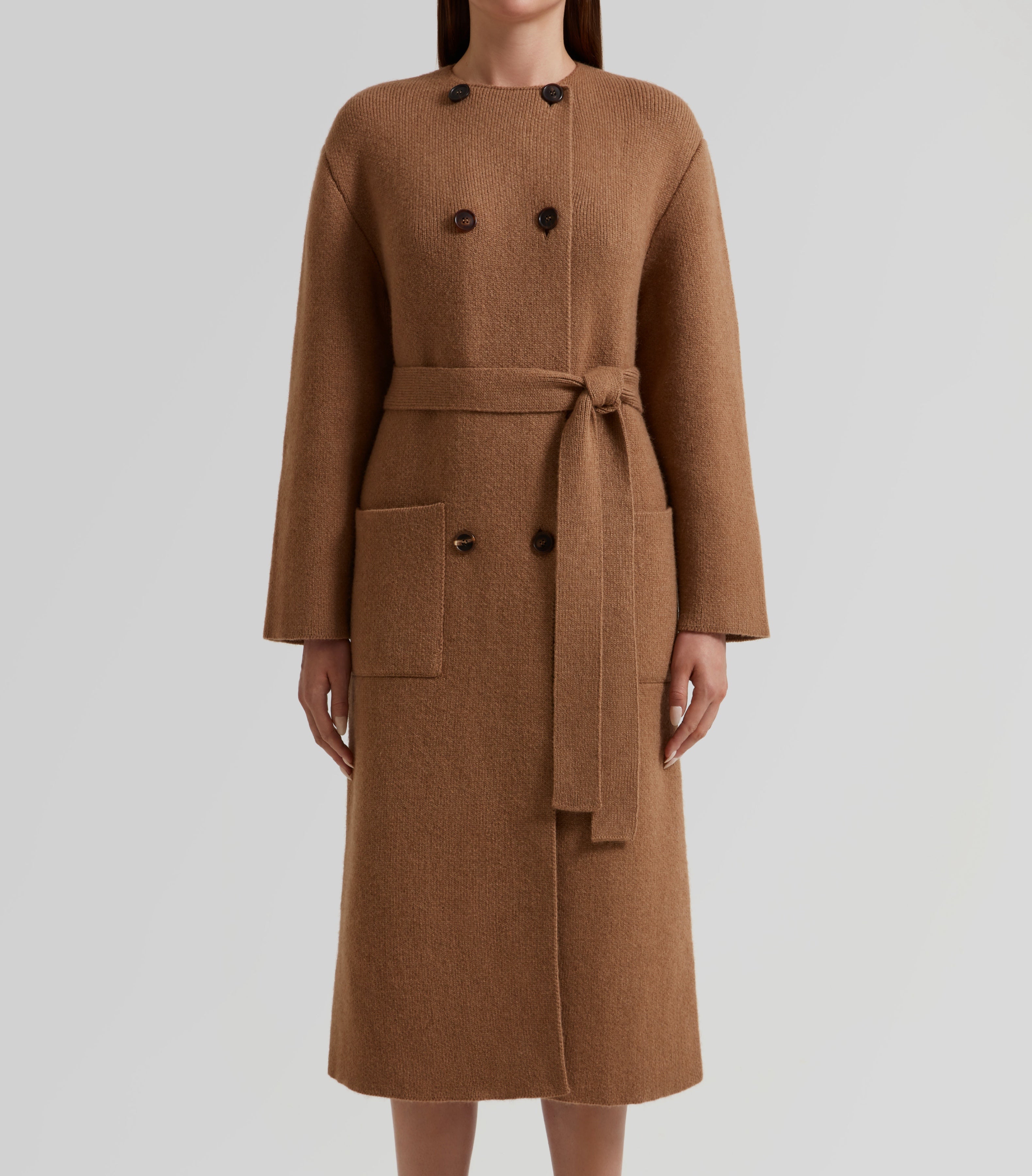 Double Breasted, Belted, Midi Length100% Baby Camel